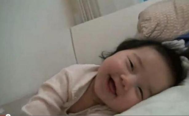 Μία μπέμπα που κοιμάται, ξυπνάει, χαμογελάει στην κάμερα και ξανακοιμάται αμέσως!